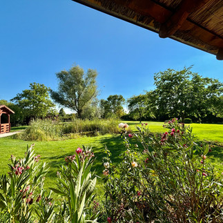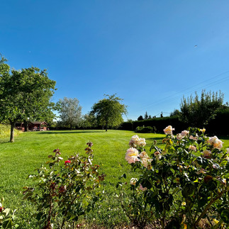 Gondozott, öntözőrendszerrel ellátott kert, gyönyörű növényzet, rengeteg lehetőség szabadtéri tevékenységekhez.